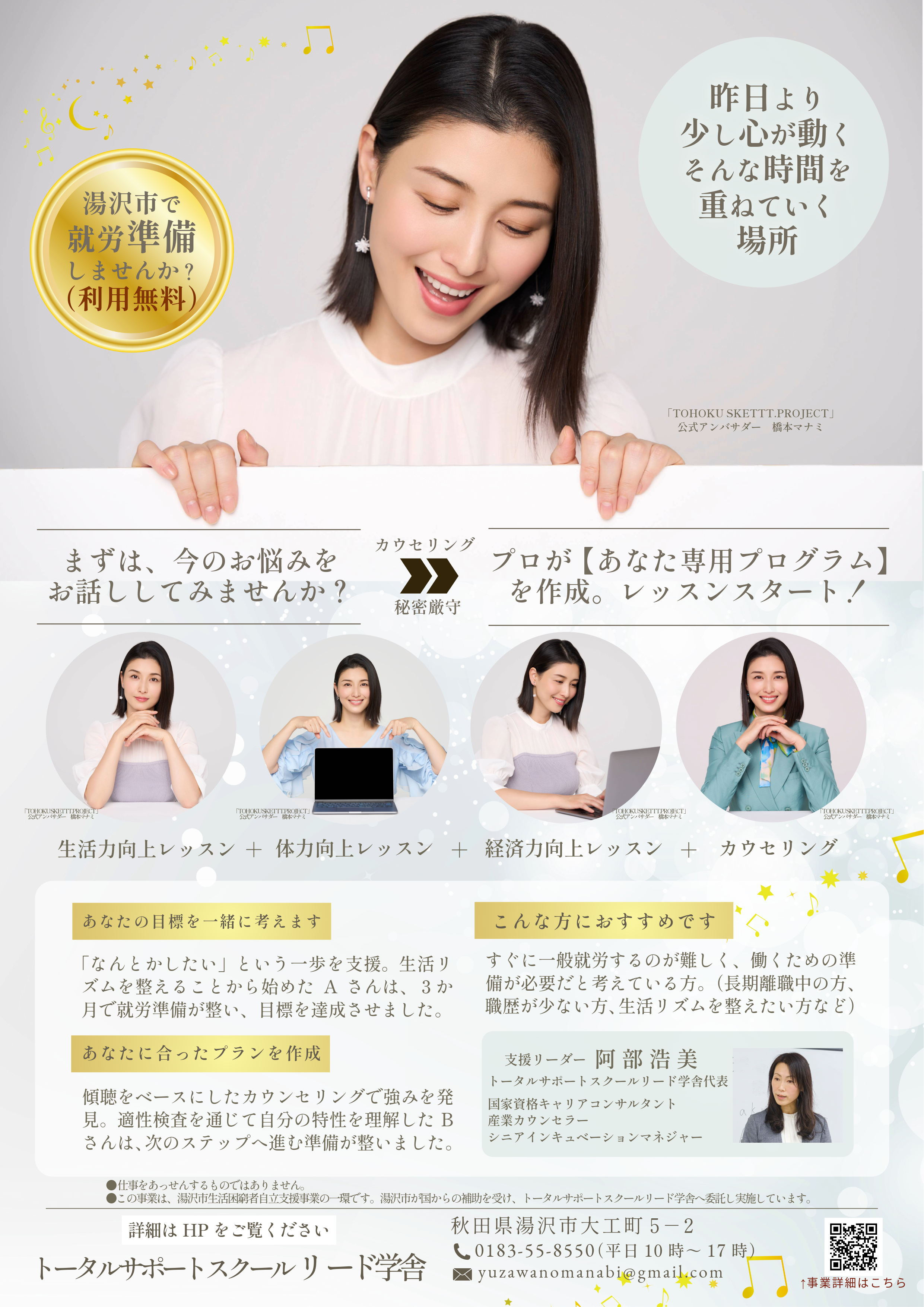 子育てと親の介護を同時に担ってきたため、長期間就労から離れていた。ブランクが長く、再就職に不安を感じている。新しい環境に馴染めるかも心配。短時間から始められる柔軟な働き方を見つけ、自信と喜びで満たされたい。生活と両立しながら、新たな挑戦を楽しんでいければ。